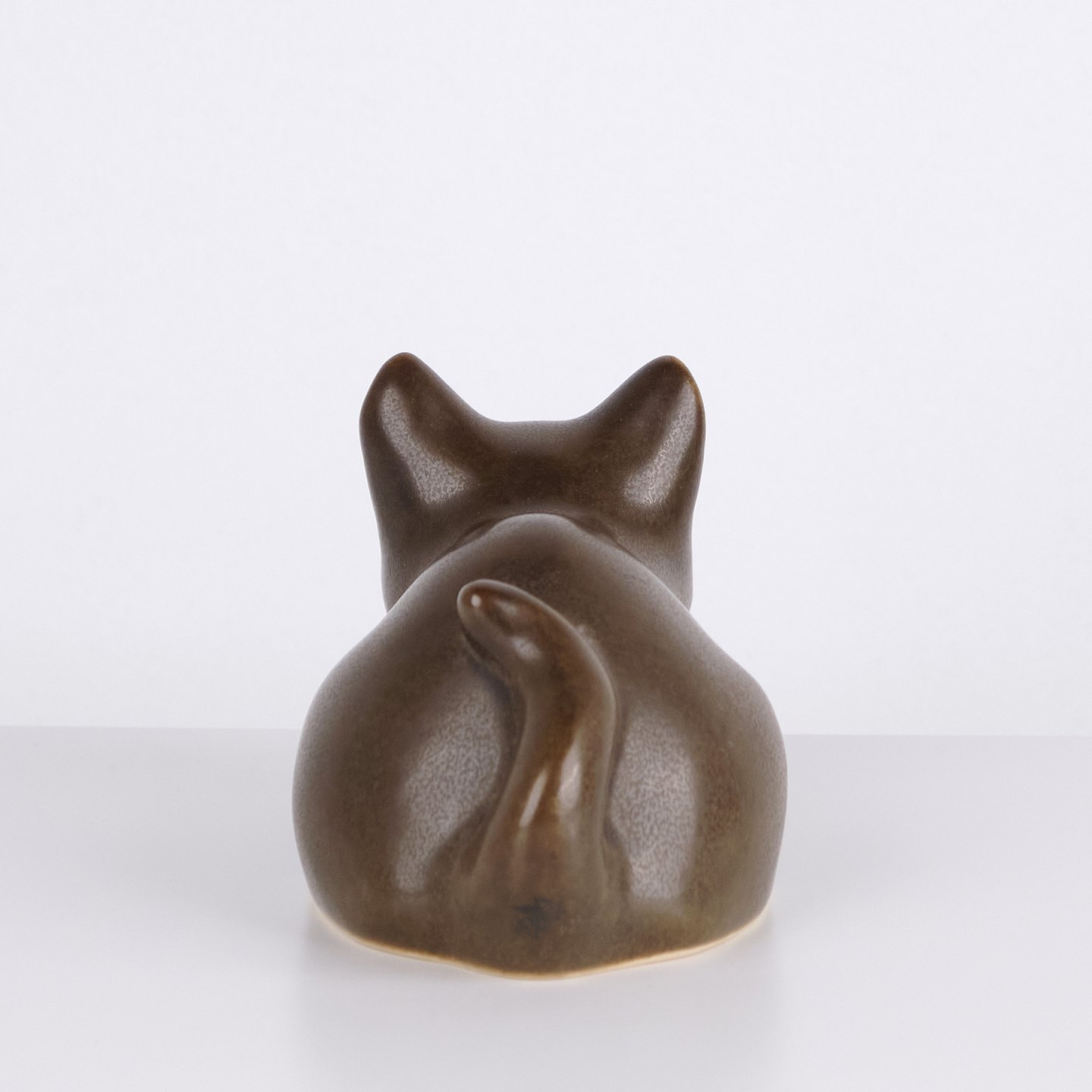 Kattefigur af Knud Basse udført som vase i brun glaseret keramik.