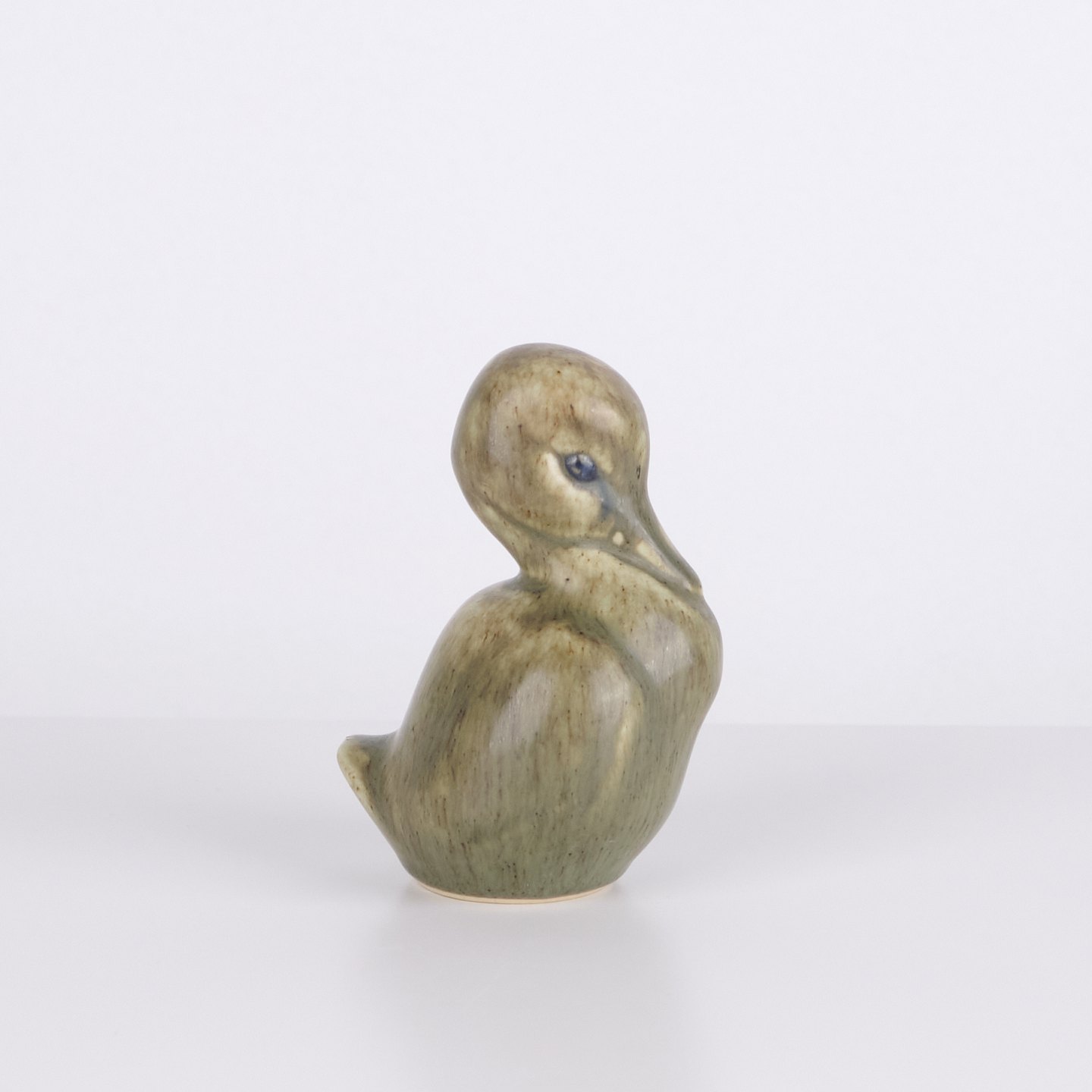 Andefigur af Knud Basse udført i glaseret keramik. Figuren er fremstillet i Danmark i 1960’erne. Knud Basse er kendt for keramiske dyrefigurer med fugle- og naturmotiver produceret i perioden.