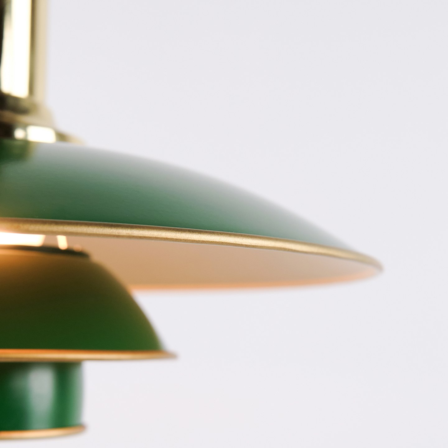 PH 3/2 pendel designet af Poul Henningsen og udgivet som jubilæumsudgave i 1996 af Louis Poulsen. Lampen er udført i messing med grønne metalskærme, hvilket giver modellen et markant og klassisk udtryk. PH 3/2 er en af Poul Henningsens kendte treskærmslamper, udviklet med fokus på blændfrit og behageligt lys. Jubilæumsudgaven blev kun produceret i en begrænset periode og findes også i en variant med røde metalskærme.