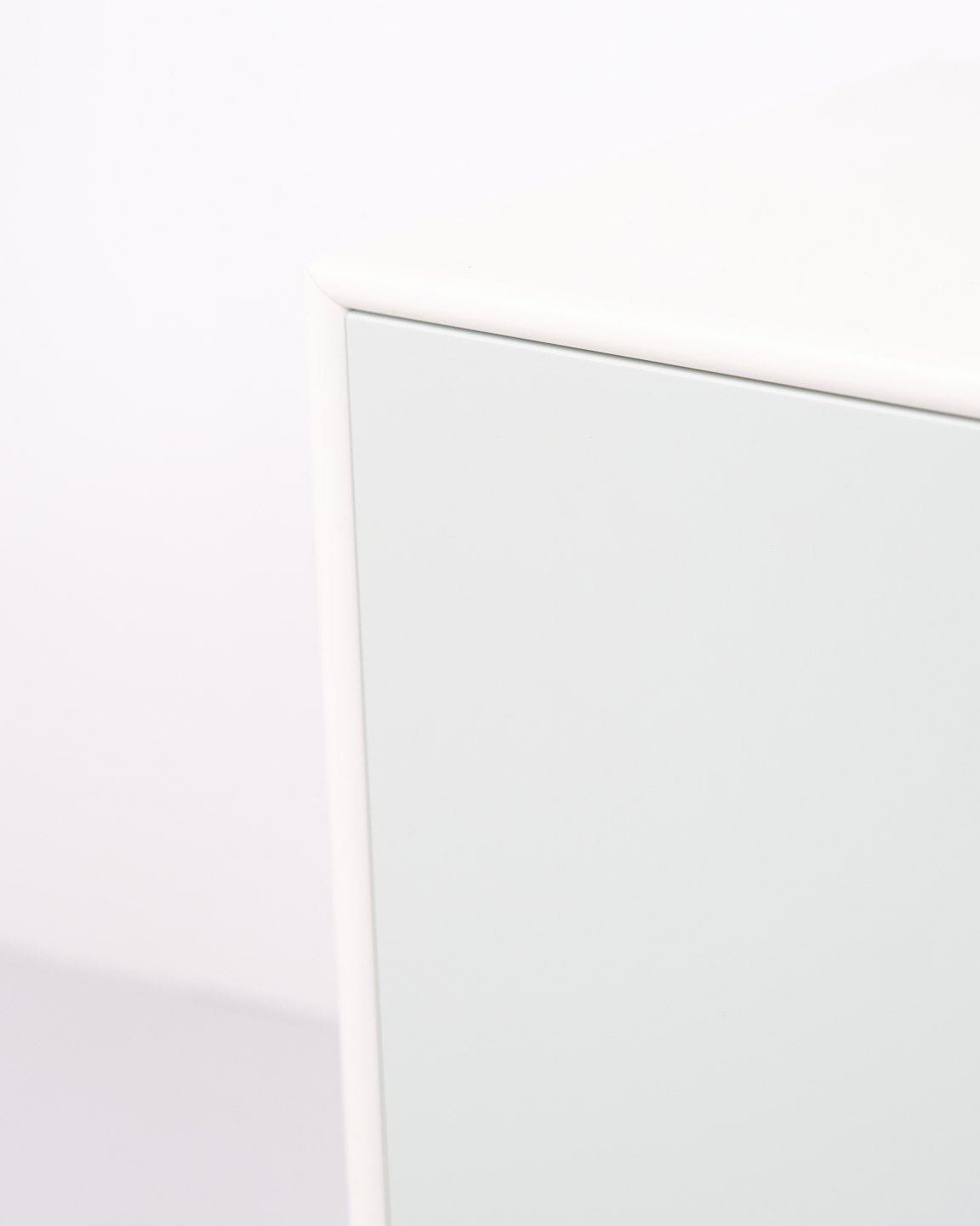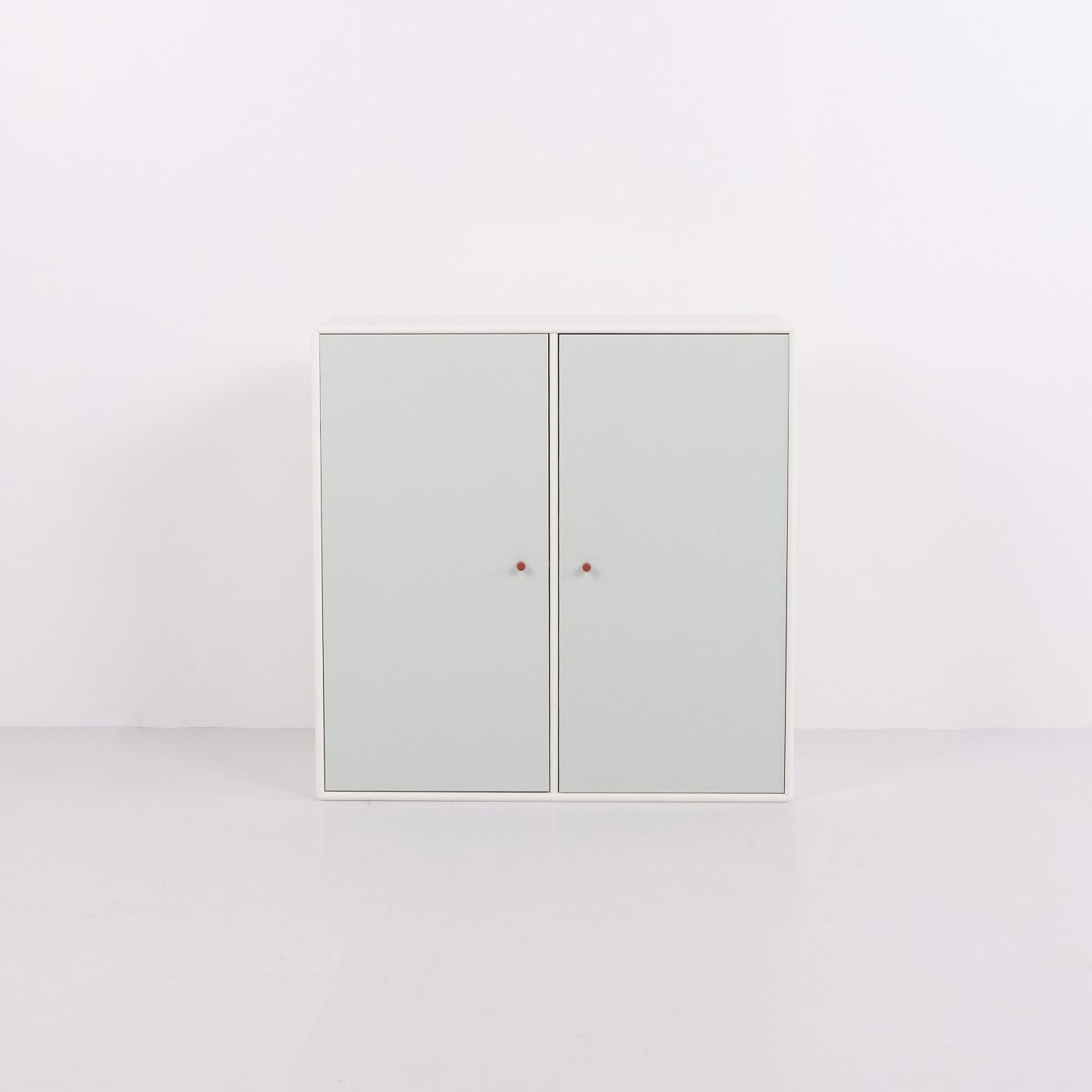 Montana skabmodul fra det modulære Montana System designet af Peter J. Lassen. Udført i lakeret MDF med hvid korpus, to mintgrønne låger og brune greb. Montana blev grundlagt i 1982 og er kendt for fleksible opbevaringsmoduler produceret i Danmark. Modellen kan anvendes som vægskab, entrémøbel, badeværelsesskab eller del af større Montana reolsystem. Montana fremstilles fortsat på Fyn og er kendt for høj finish samt stort farveudvalg.