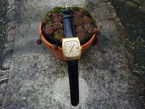 Omega chronometer constellation automatic med sort kroko læderem fra 1970 erne
