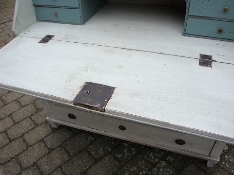 Chatol fra år ca 1790 i Gustaviansk grå med lige klap og med svag blå nuance indmad i fin stand
