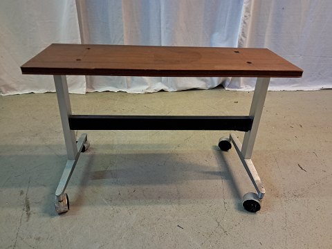 Bord i aluminium med fineret plade i teaktræ, fra 1980erne.