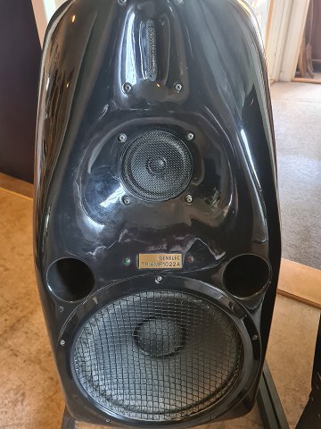 3 GENELEC TRIAMP 1022A gulvhøjtalere. Testet og virker. Fremstår med brugsspor i form af overfladeridser. Kommer med ophæng i metal. Yderligere medfølger 3 stk. der er til reservedele/restaurering. 1 hvor bassen er kaput. 1 der ikke kommer lyd ud af og 1 tomt kabinet. Diverse strøm- og tilslutningkabler medfølger ligeledes.