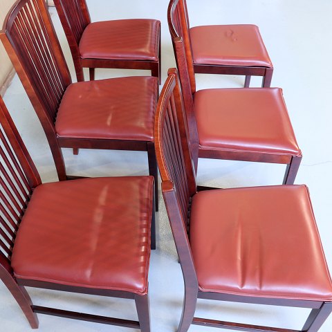 6 stole i bejdset og lakeret bøgetræ m. læderbetræk,
