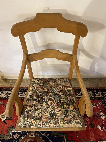 Armstol i bøgetræ med sæde betrukket i stof. Udført ca. 1870-1880.