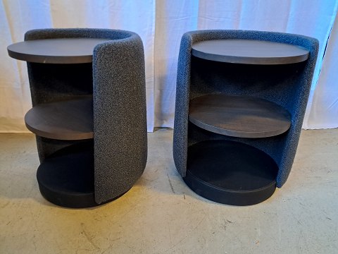 2 Natborde i fineret egetræ, kunstlæder og stof, af nyere dato.