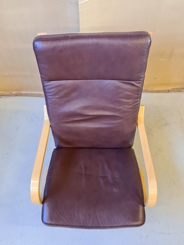 Lænestol i bøgetræ med læderhynde fra 2000erne.