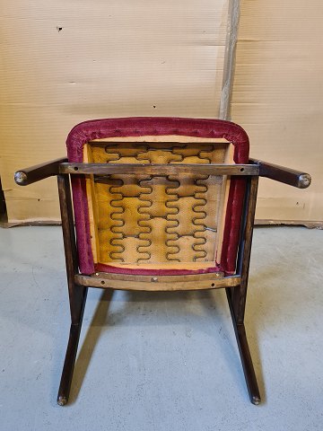 Lænestol i egetræ med velour betræk, fra 1960erne.