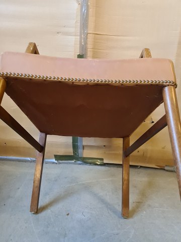 Armstol i bøgetræ med læderbetræk, fra 1950erne.