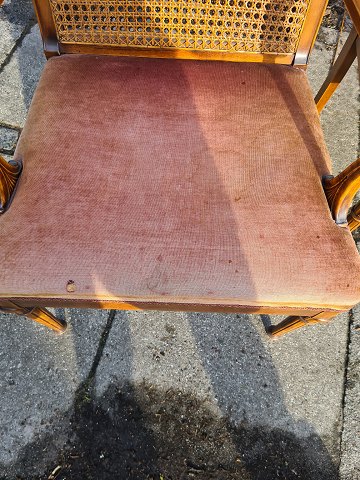 2 Armstole i birk med ryg I rørflet og velourbetrukket sæde. Svensk produceret i 1930'erne. Fremstår pæne, velholdte og udmærket stabile. Dog med brugsspor på sæderne.