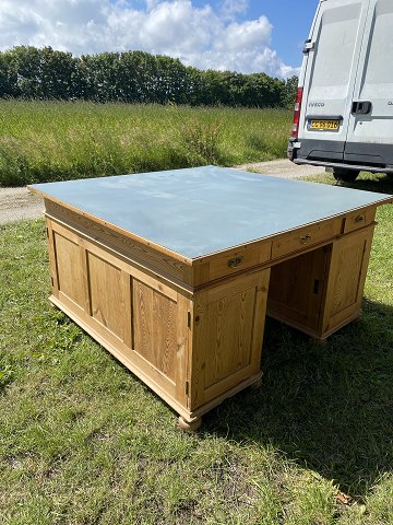 Dobbeltskivebord i massiv fytræ med linoliums plade