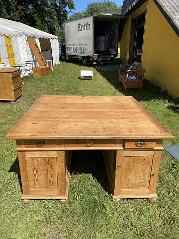 Dobbeltskivebord i massiv fytræ med linoliums plade
