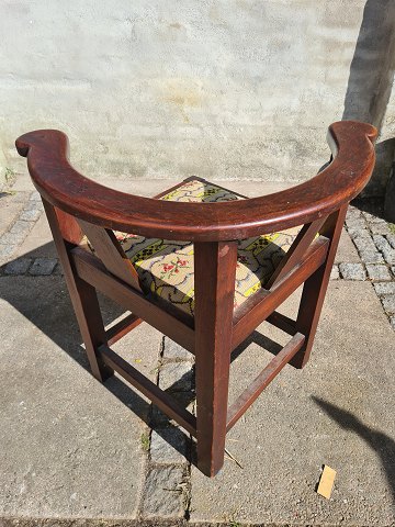 Hjørnestol fra 1930´erne i eg og med broderet sæde. Fremstår pæn og udmærket stabil uden nævneværdige brugsspor.