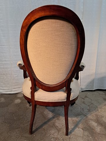 Armstol i massivt mahogni med broderet betræk, fra 1890erne.