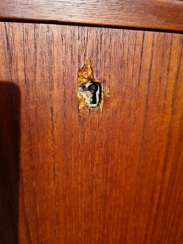 Brugt stand, fremstår med brugsspor samt skade ved nøglehul. Se foto.