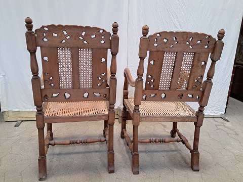 2 Armstole i massivt egetræ med intakt rørflet, fra 1930erne.