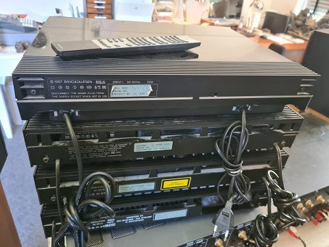 B&O anlæg fra 7000 serien i sølv/sort. Delvist til restaurering/reservedele. Beomaster 7000 virker fint. Beomaster CD virker fint. Beocord lyser og skuffen virker, men ikke funktionerne vedrørende afspilning af kasettebånd. Beogram pick-up armen flytter sig ikke, og skiven drejer heller ikke. Ældre fjernbetjening medfølger. |