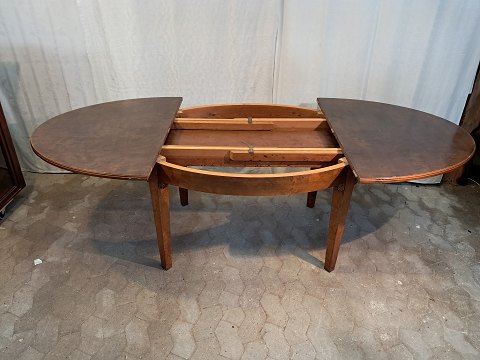 Spisebord i fineret birketræ med 3 tillægsplader, fra 1920erne.