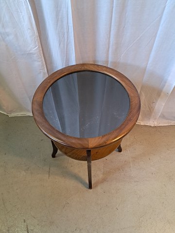 Sidebord i mahogni og bøgetræ med glasplade, fra 1920erne.
