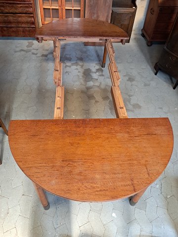 Spisebord i fineret mahogni med 3 tillægsplader, fra 1950erne.