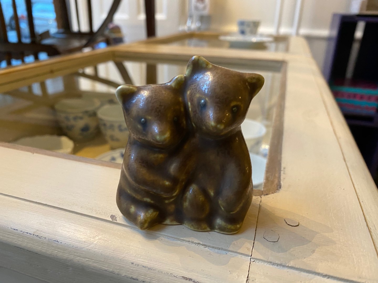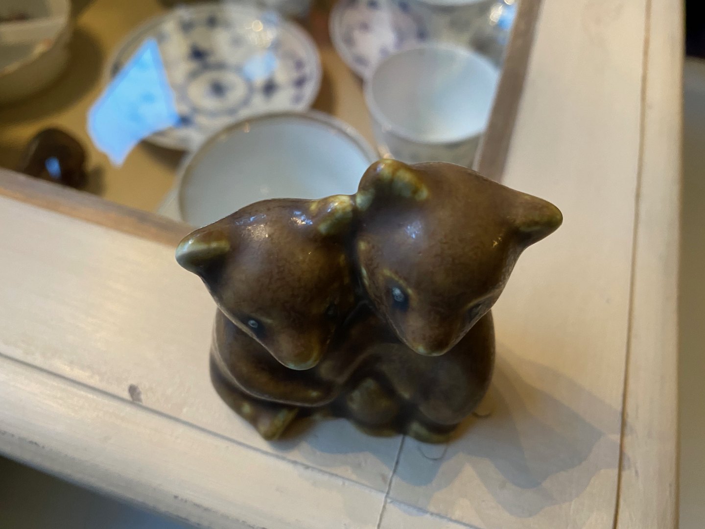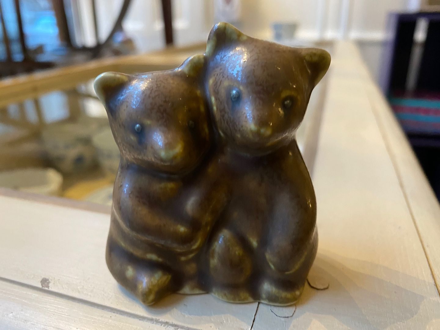 Lille keramikfigur af par bjørneunger af den danske keramiker Knud Basse, eget studio, harepelsglasur kr. 400