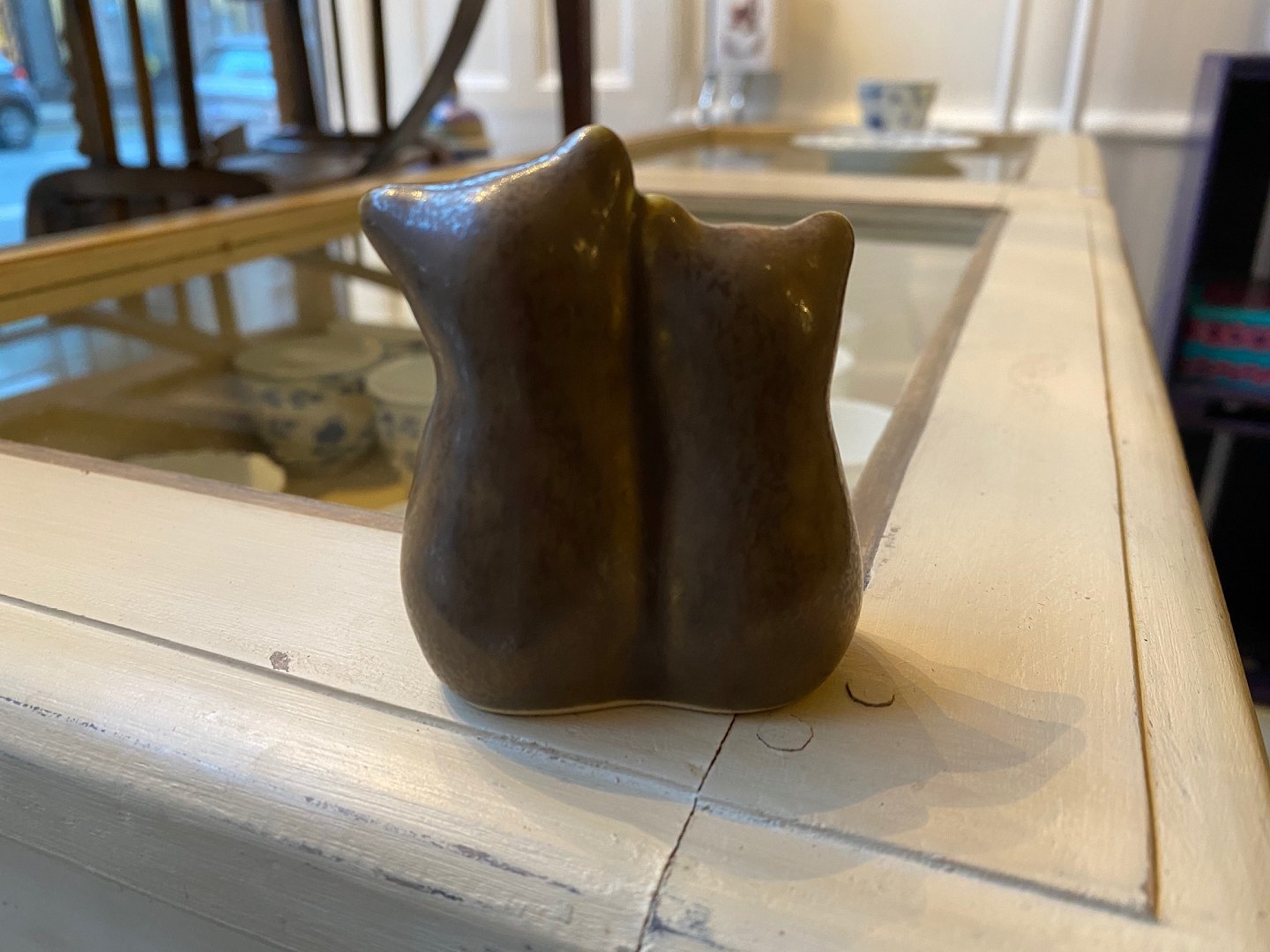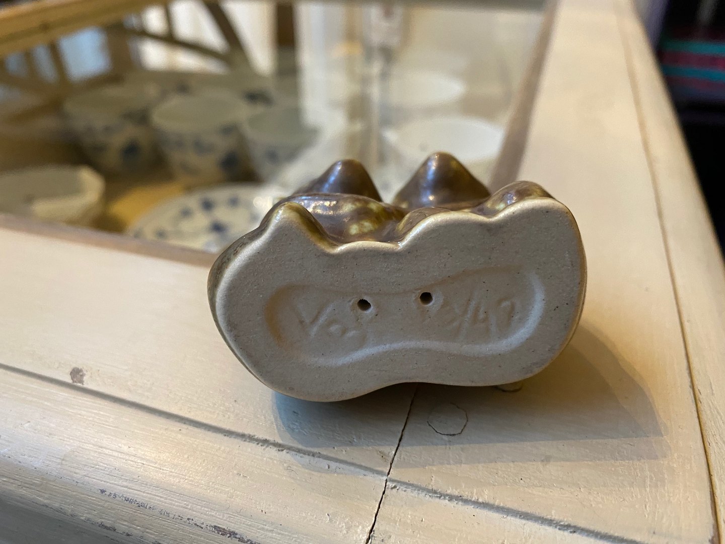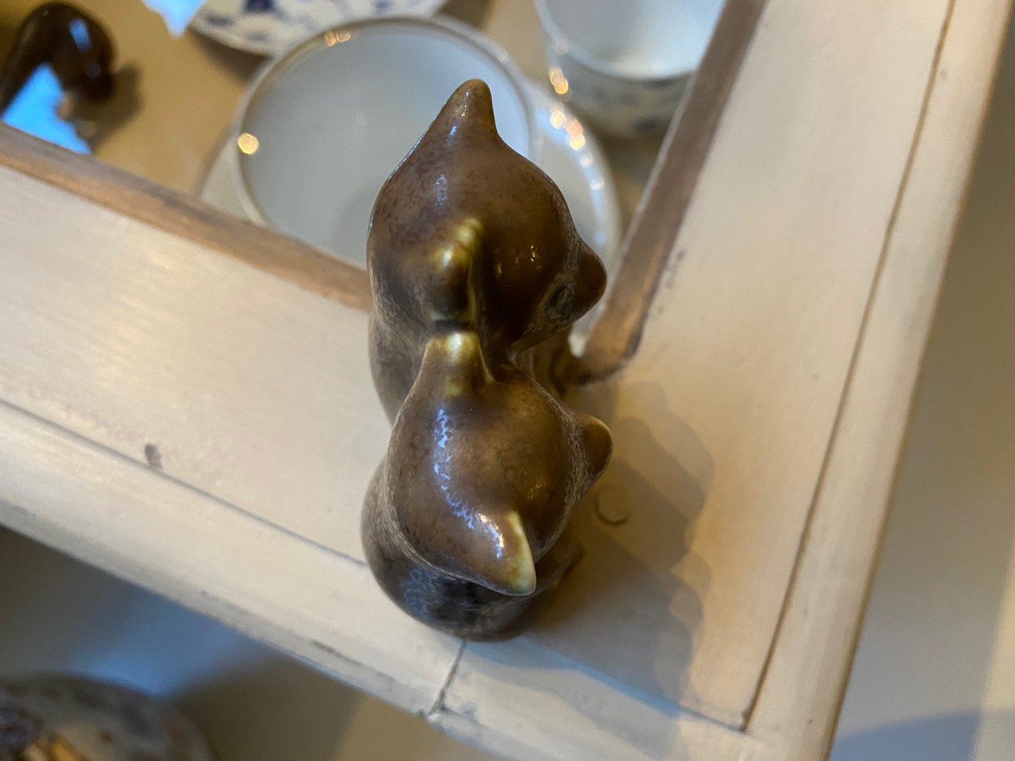 Lille keramikfigur af par bjørneunger af den danske keramiker Knud Basse, eget studio, harepelsglasur kr. 400