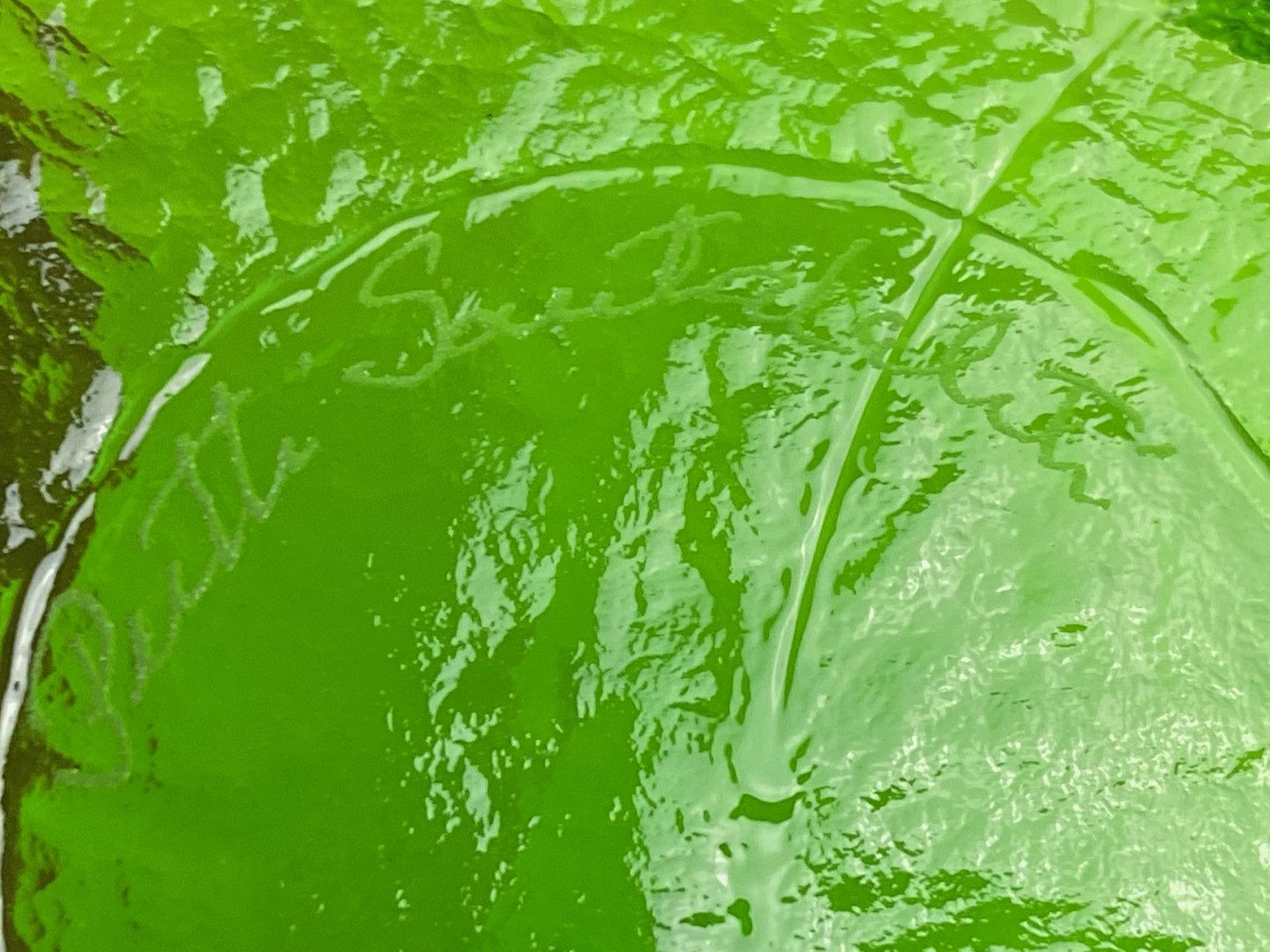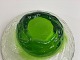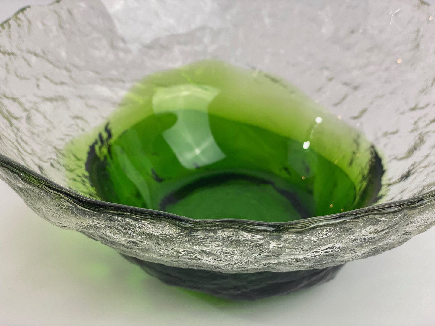Signeret skål af glas af Pertti Santalahti for Humppila, Finland, 1970'ene, grønt og klart glas med iseffekt