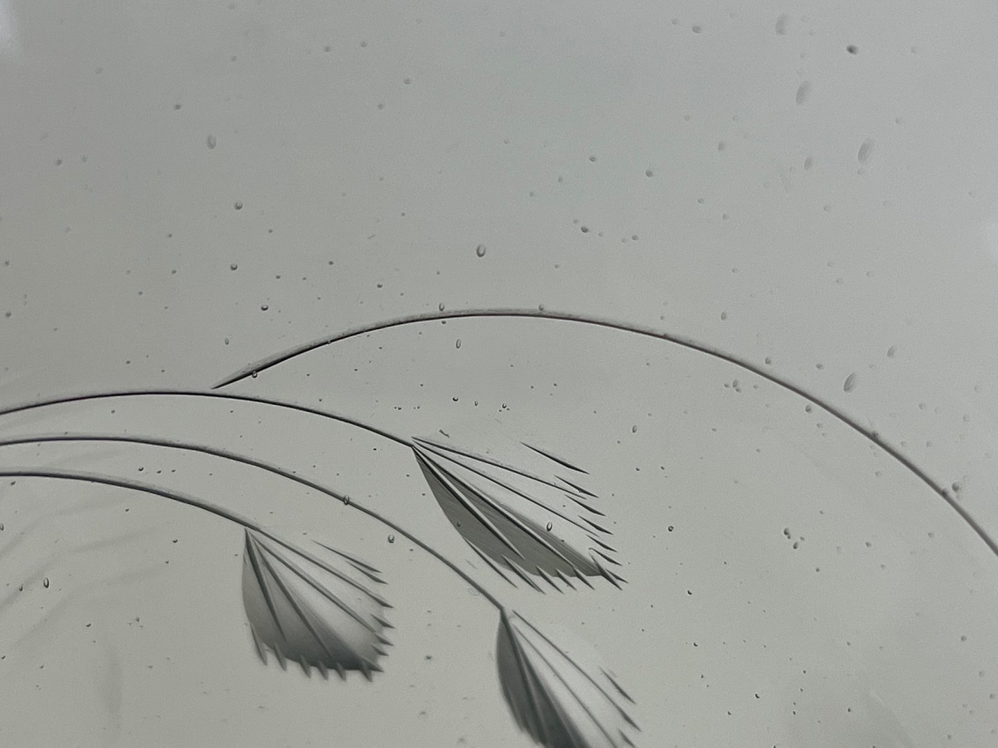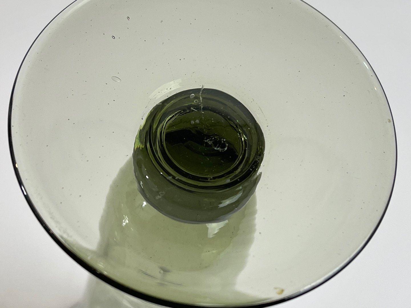 Få brugsspor: Den høje vase har masser af bobler i glaset. Laveste vase en smule vandspor, som ikke kan fotograferes.