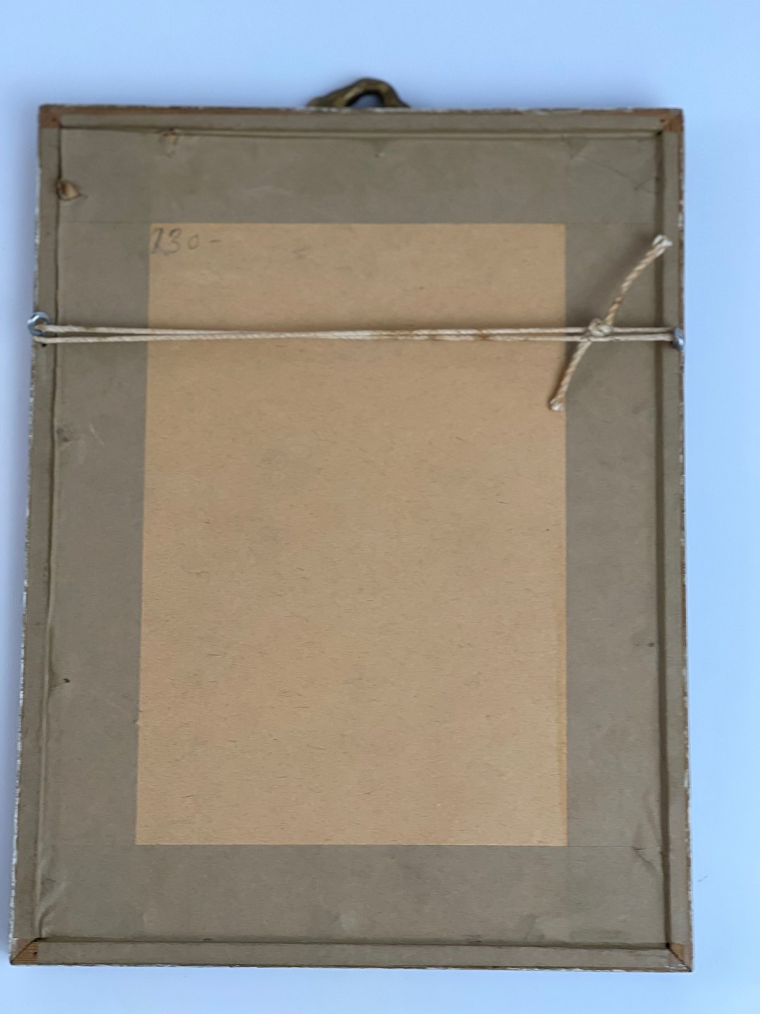 God stand, undersøgt i ramme. Rammen med skader, herunder revne i øverste højre hjørne.