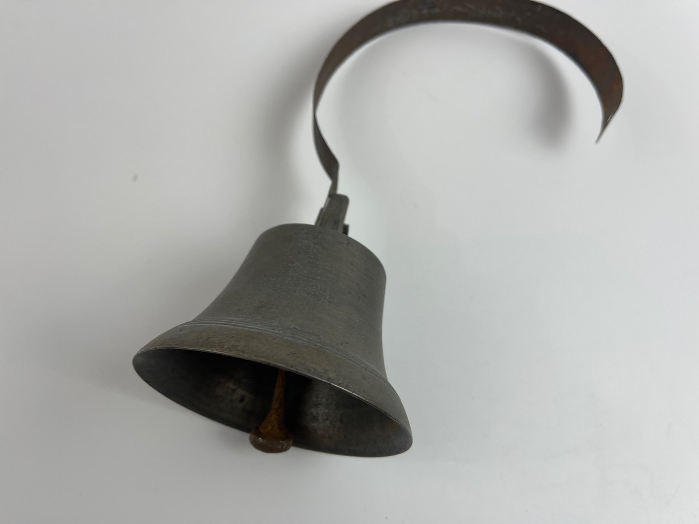 Gammel butiksklokke i farmhouse-stil af patineret metal. 1900-tal.