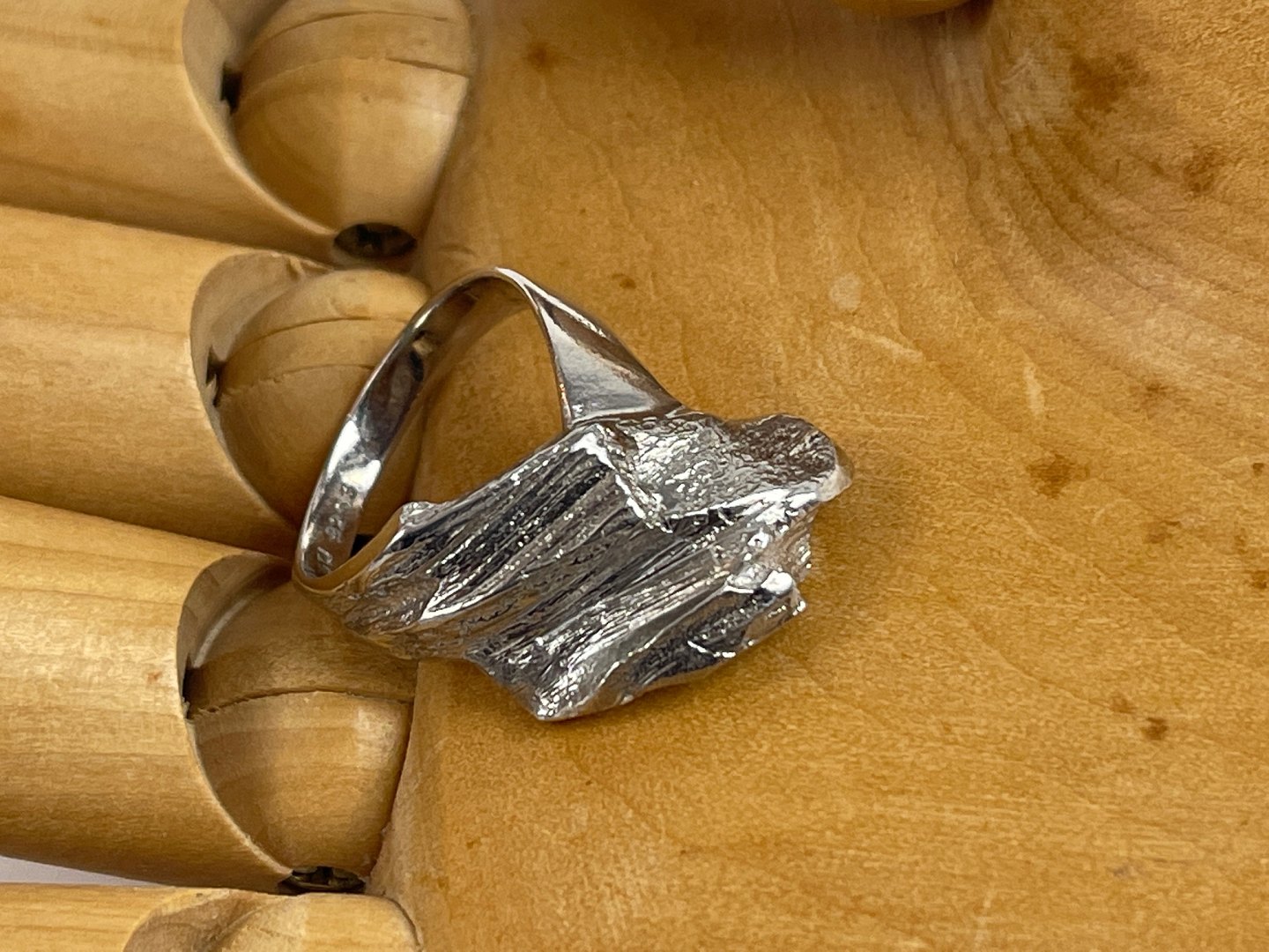 Stor, modernistisk ring i sterlingsølv med