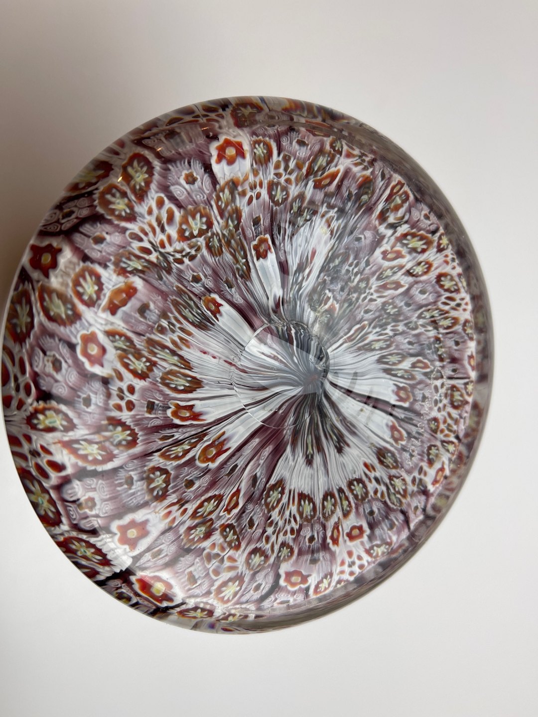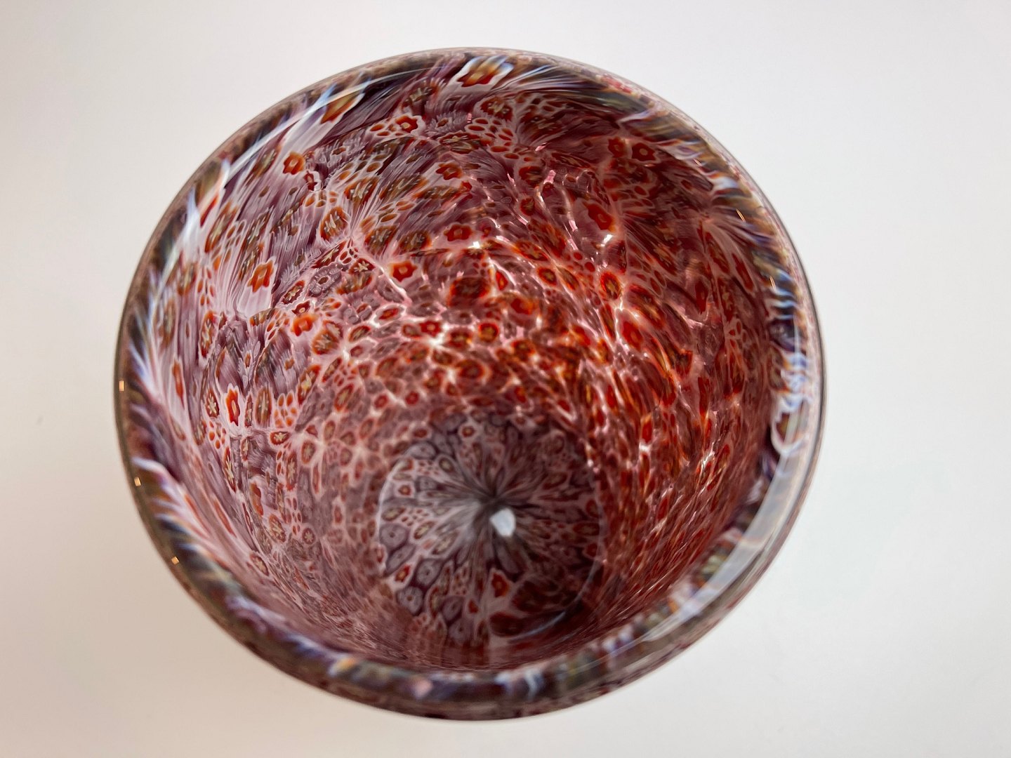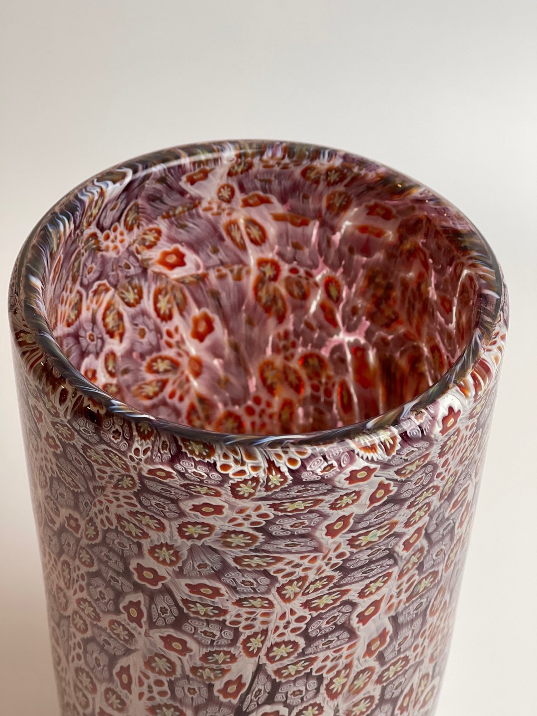 Vintage pink / rosa / lilla Millefiori vase. Italien / Murano. Vasen er signeret.
