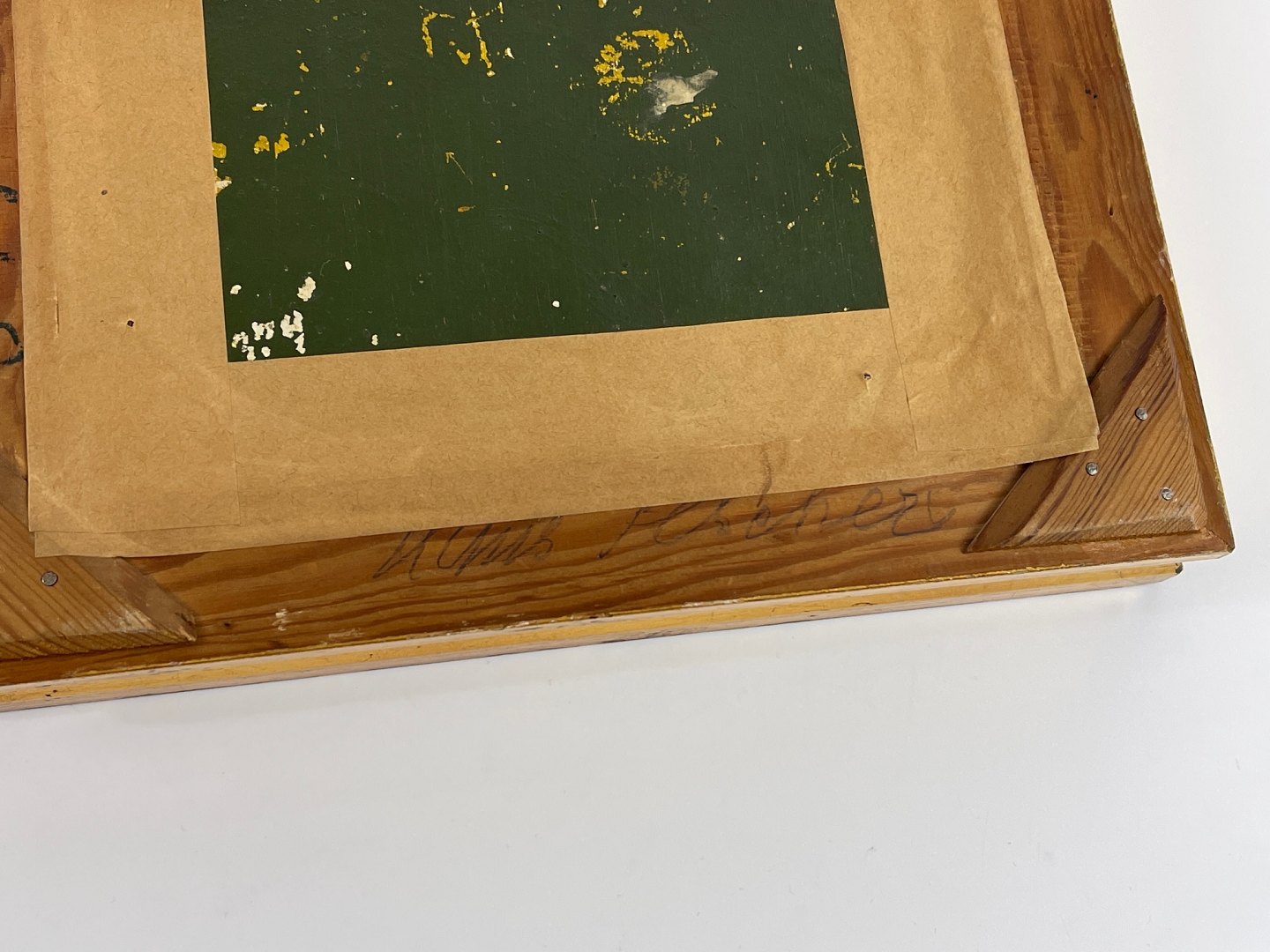 Aldersrelateret stand, bl.a. med krakkeleringer. Muligvis retoucheringer.