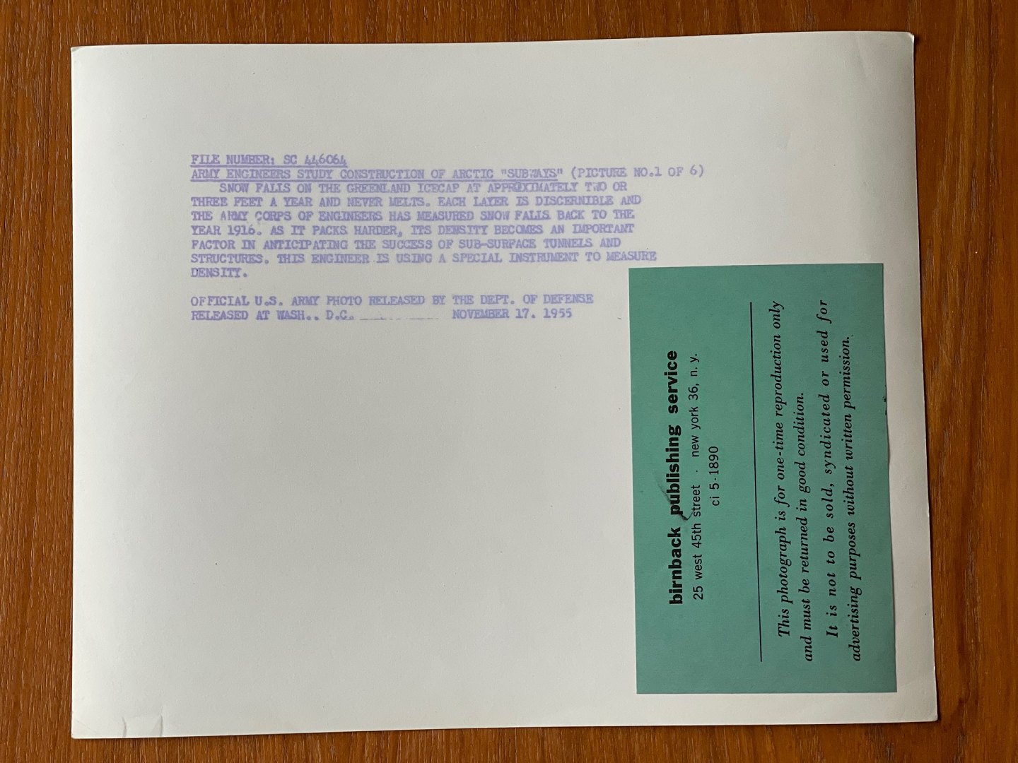 Billedet bærer en mærkat fra Birnback Publishing Service.