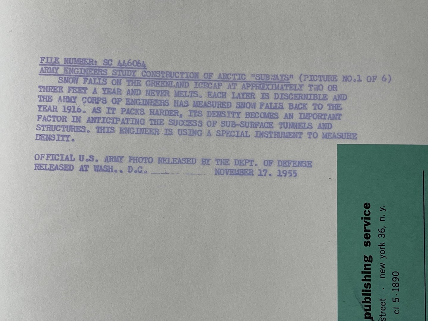 "File Number, SC 446064 Army engineers study construction of arctic "subways"