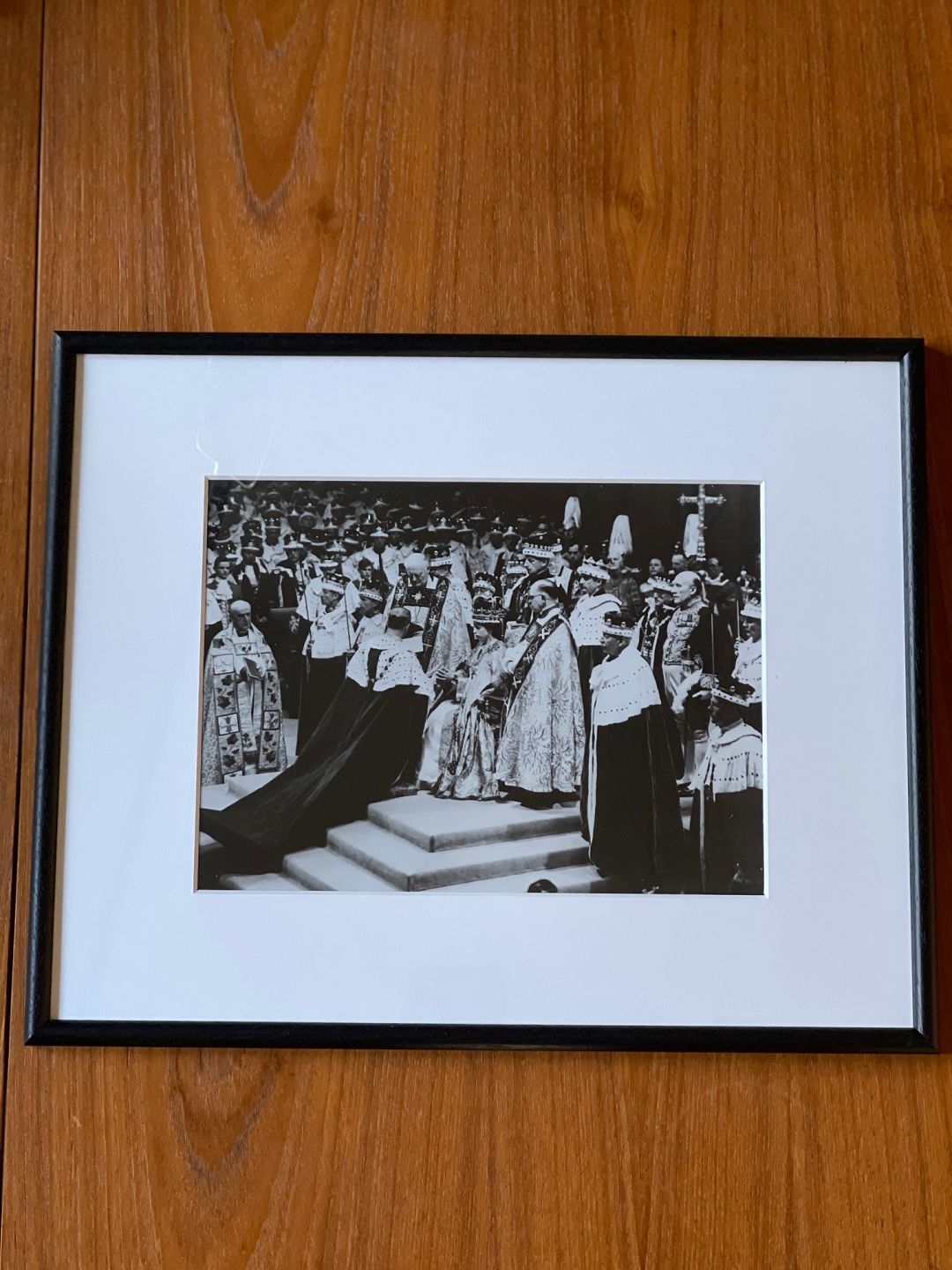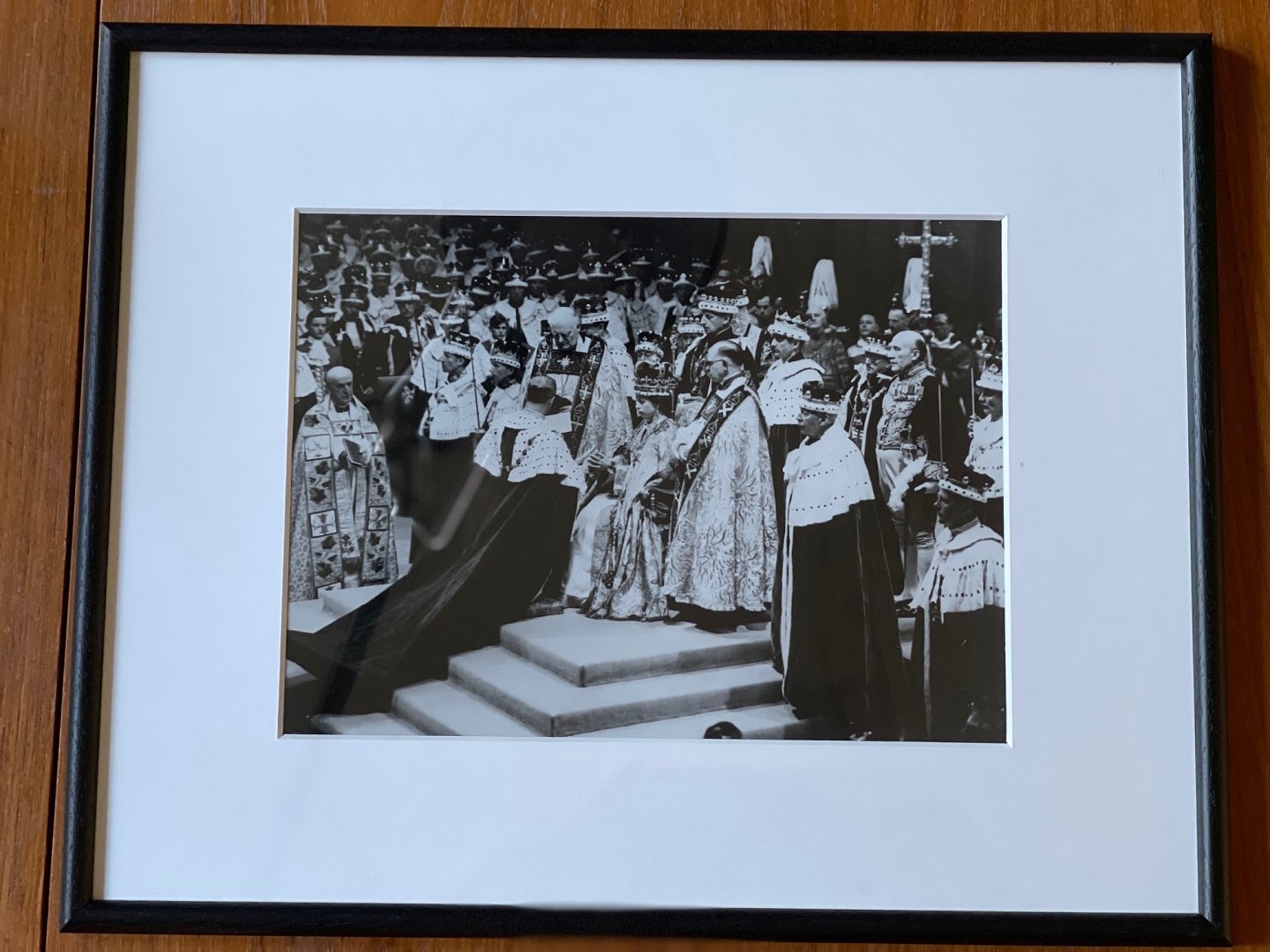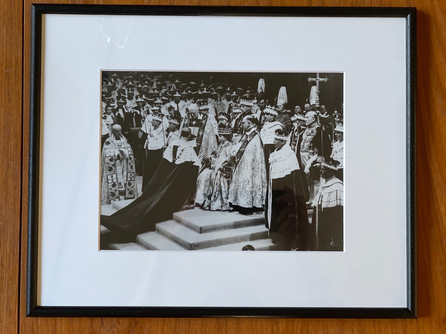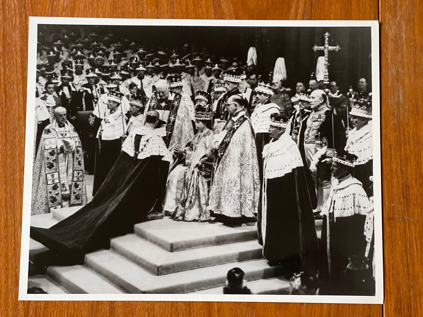 Sort-hvidt, vintage fotografi af den engelske dronning Elizabeth den II under hendes kroning i Westminster Abbey i London den 2. juni 1953. fotopapir fra Kodak. Negativet er fra 1953, men nærværende fotografi er fremkaldt i 1970'erne - 1980'erne.