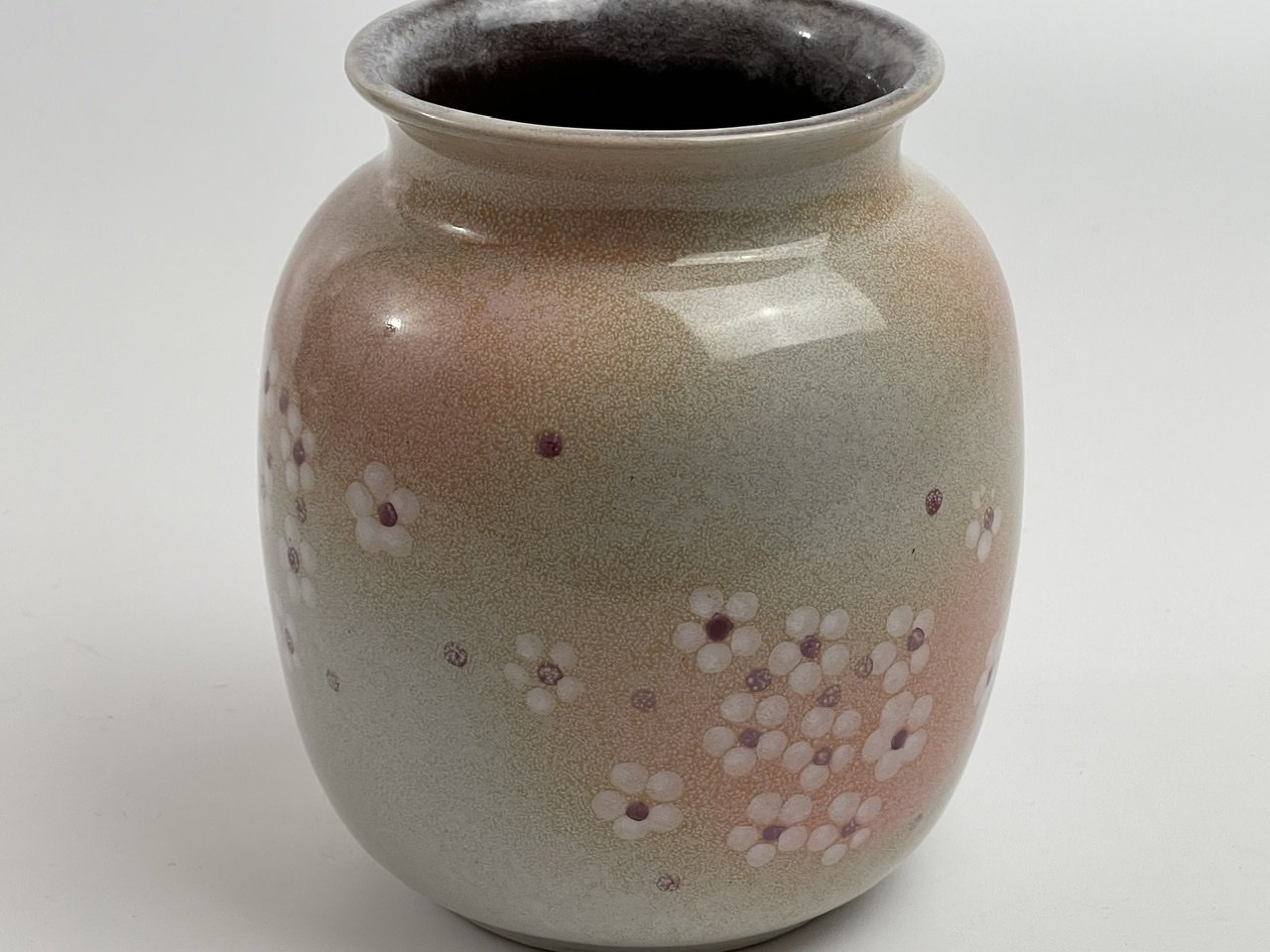 Fin, delikat keramik vase med kirsebærblomster fra Østtyske Strehla keramik.
