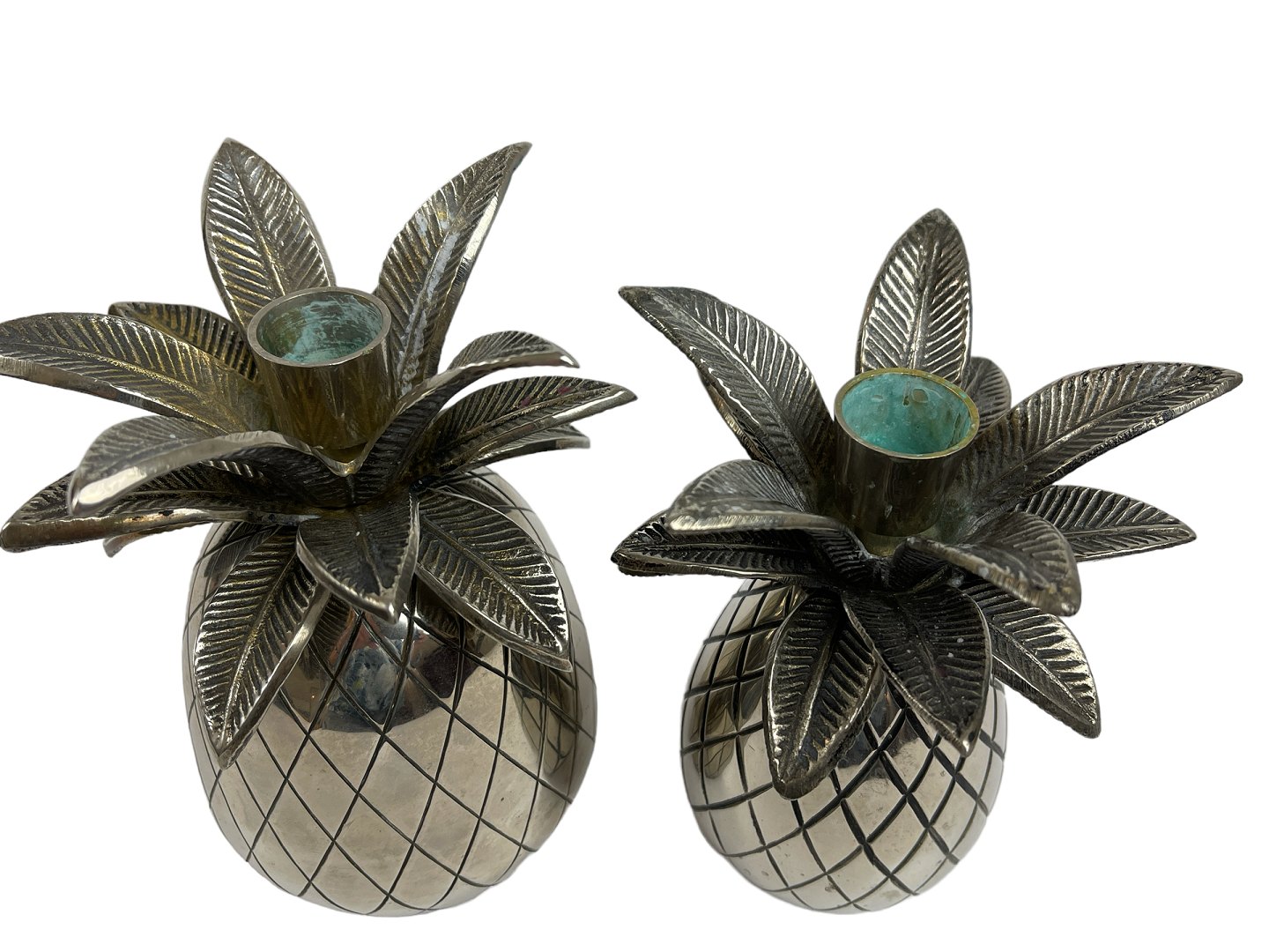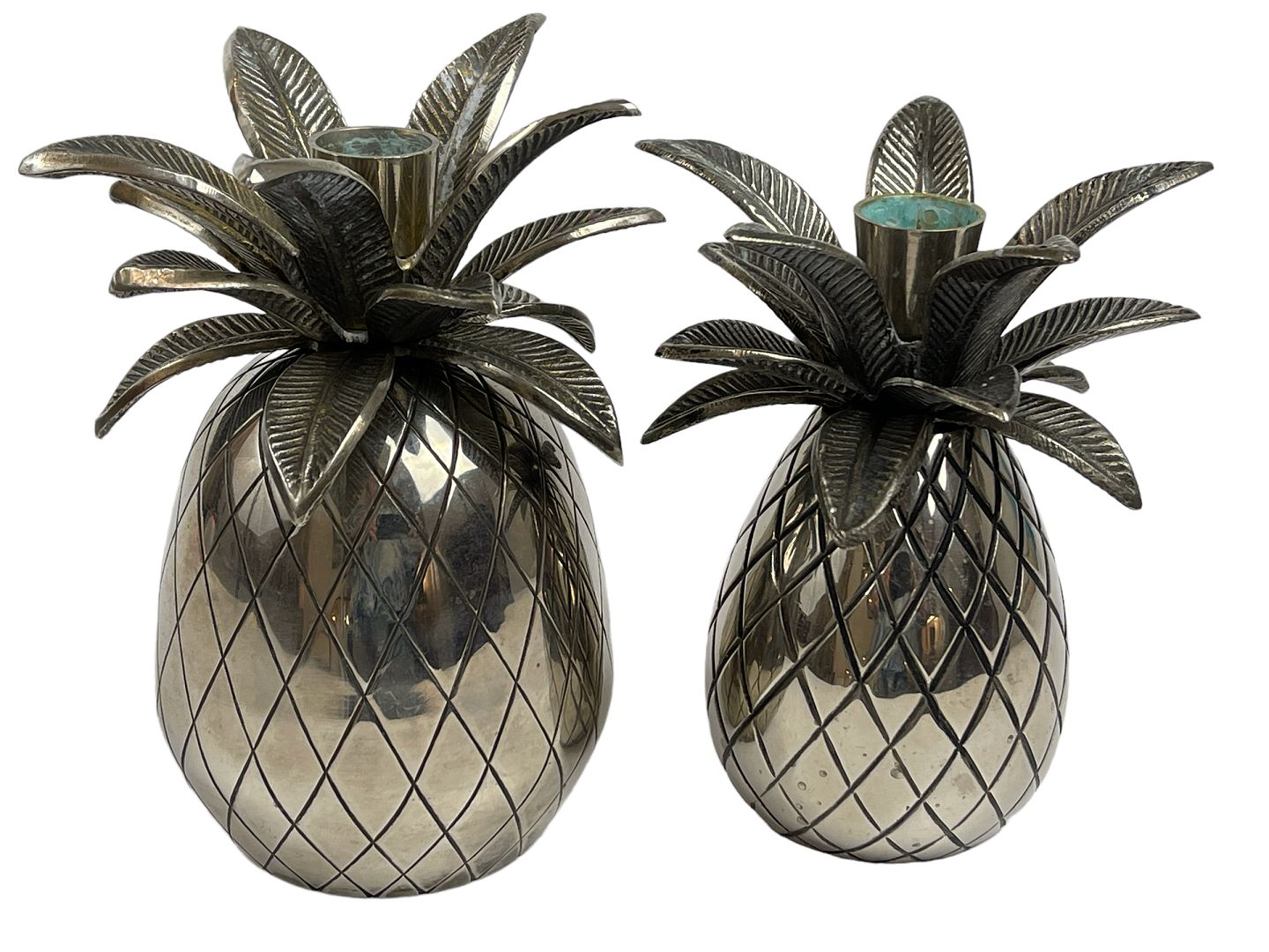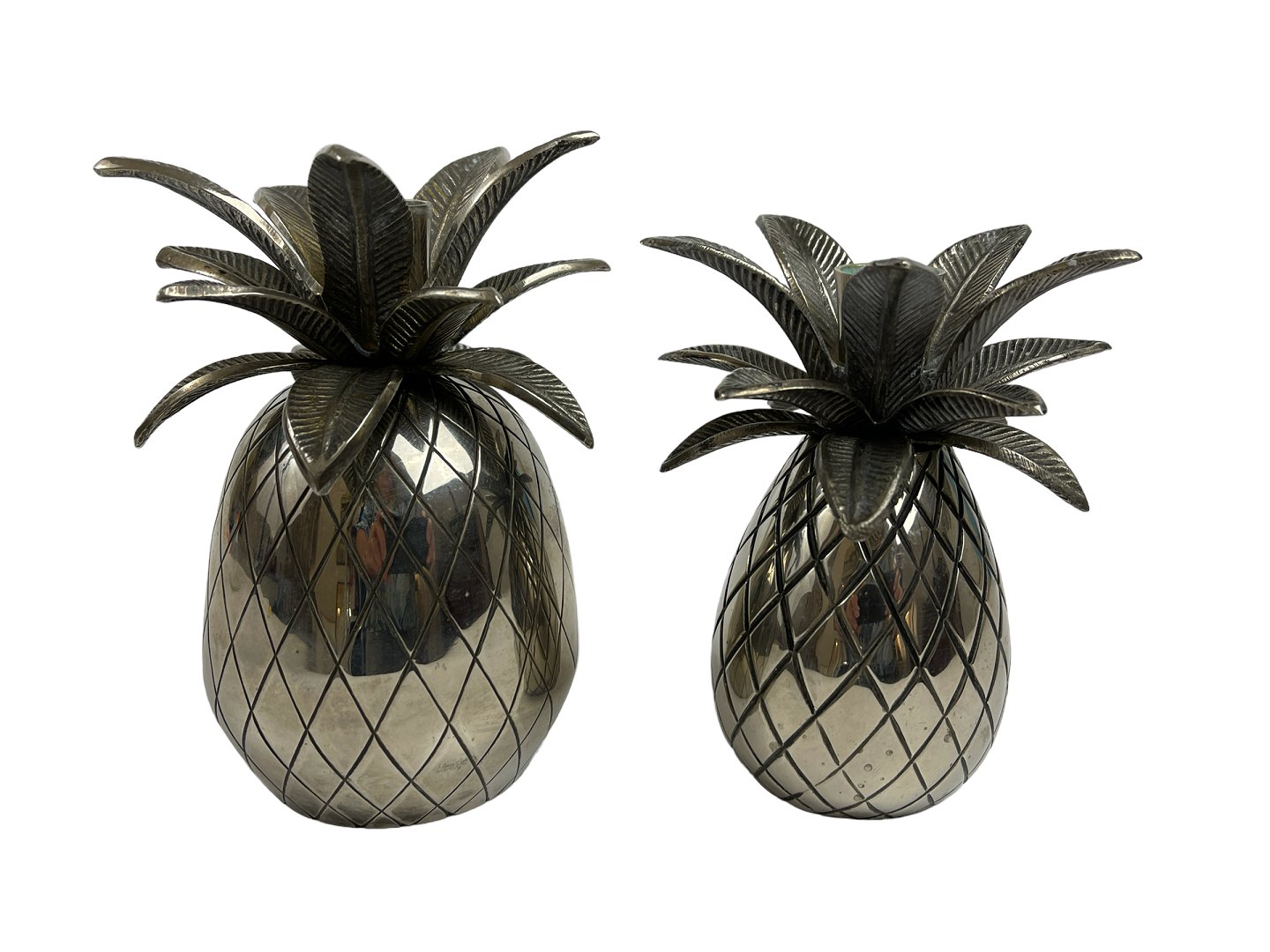 Par ananas-formede lysestager af forniklet metal