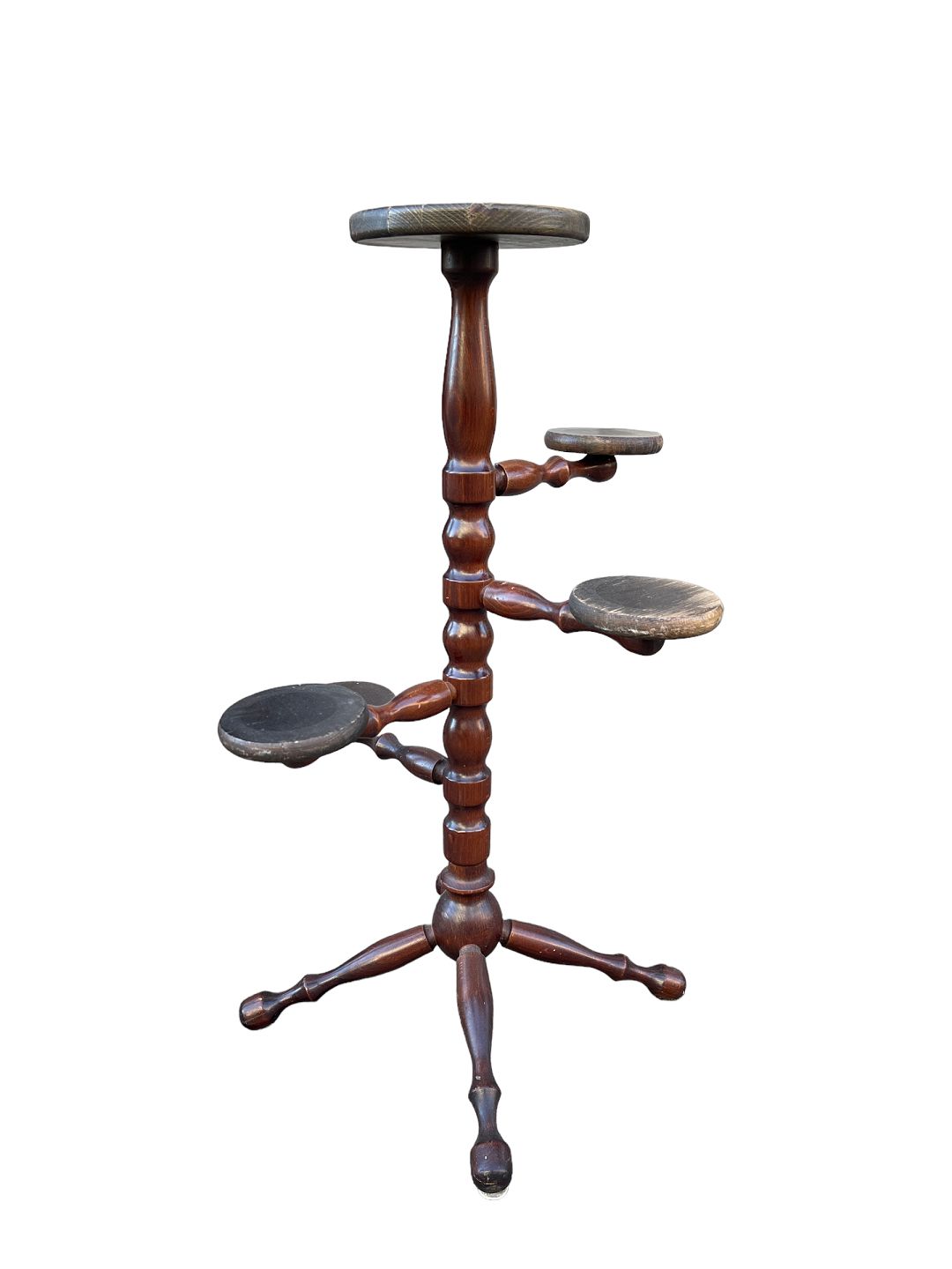 Plantestativ / stativ af træ med 4 arme samt topplade til display af fx urtepotter eller vaser. 20. århundrede. Rigtig fin stand, dog med slitage på hylder (se fotos)