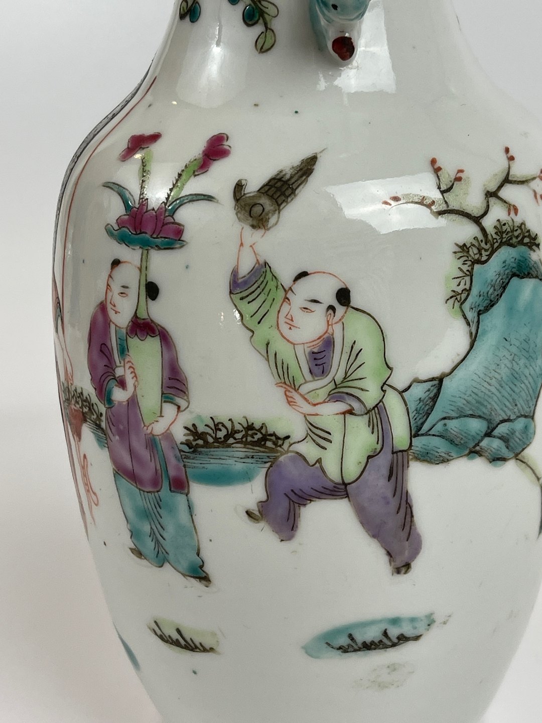 Antik kinesisk vase, familien rose med scener og personer i en have. 19.-20. århundrede