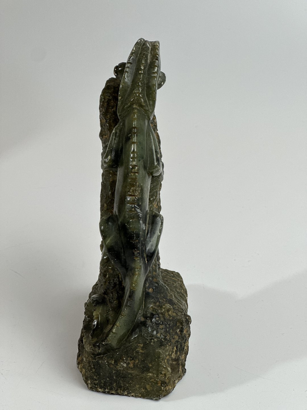 Kamæleon-figur, Afrikansk Shona skulptur, Zimbabwe. Signeret C. Tandi. Skåret i sten/mineral-materiale.