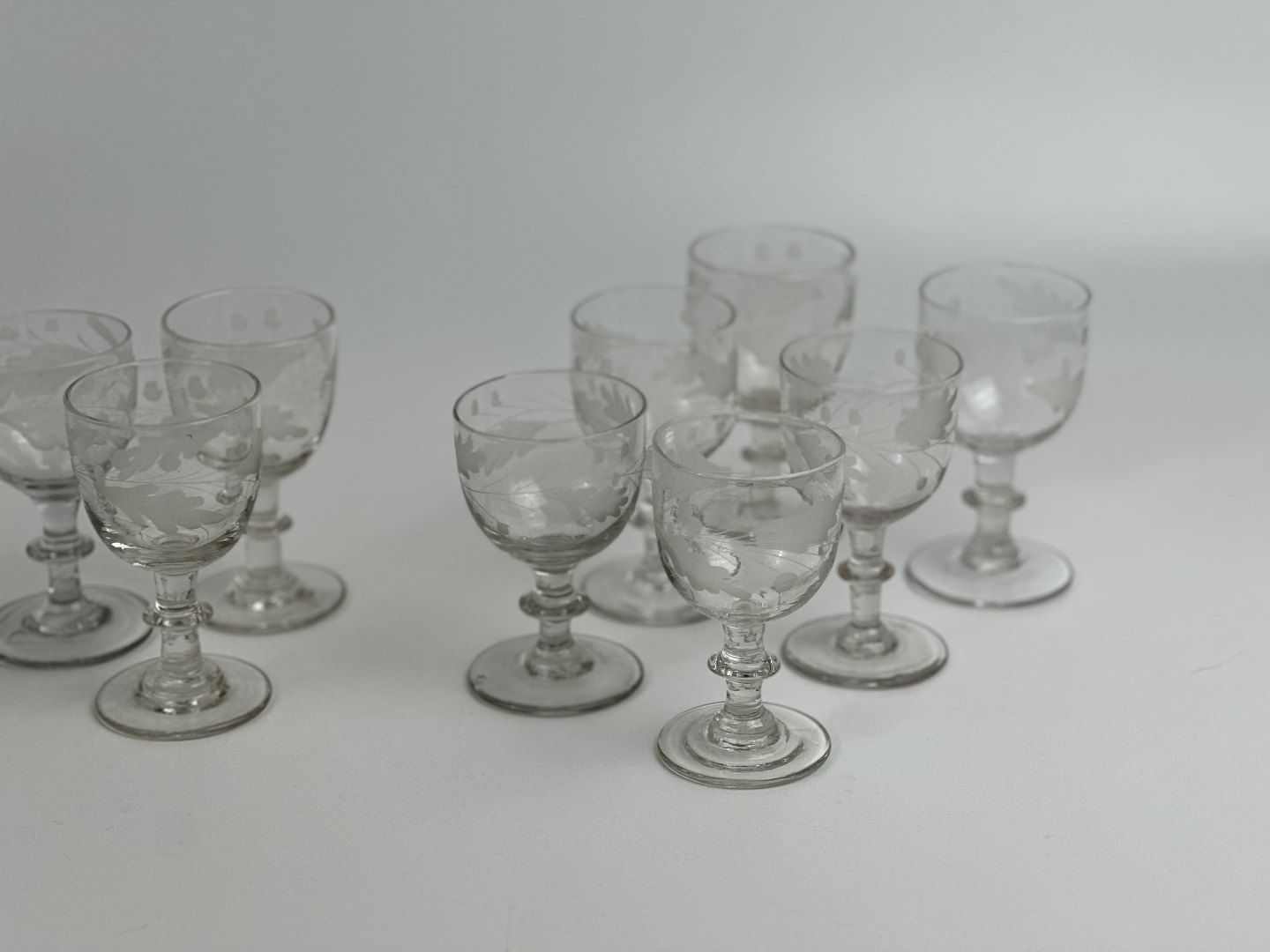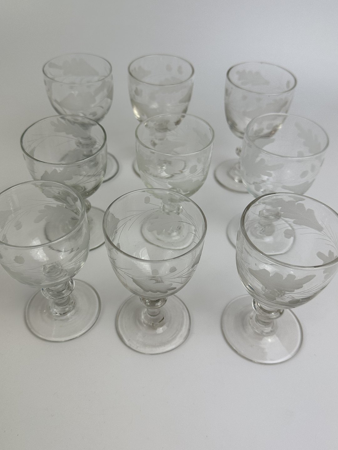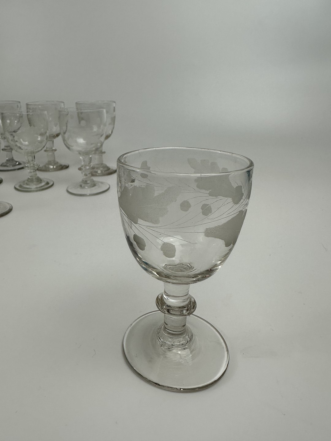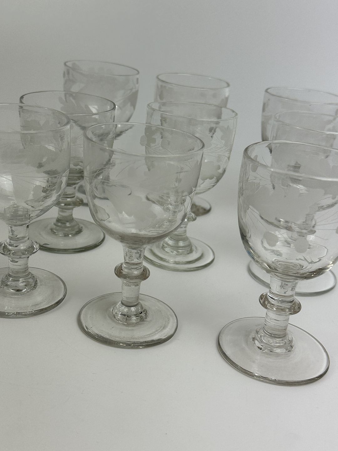 7 stk. i fin stand. 3 stk. med forskellige fejl - et har fejl i glasmassen på kummen (medfødt), et har et miniatureafslag på fodrand. Et har slebet rand.