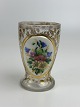 Bøhmisk drikkeglas (Ranftbecher) med dekoration af bladværk i guld samt emalje bemalet plakette med blomsterbuket på front. Bøhmen 19. århundrede