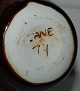 Japansk inspireret lågkrukke udført af Jane Reumert i 1974. Fremstår i perfekt stand. 8 cm høj.