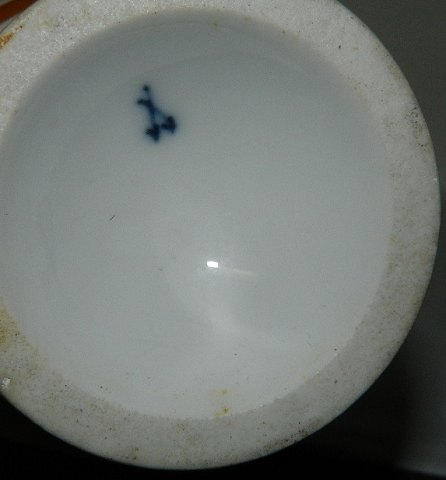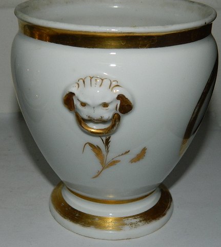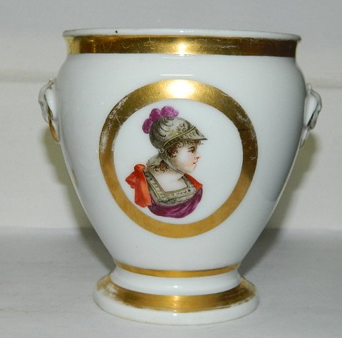 Blomsterskjuler fra Meissen ca. 1840. Dekoreret med samme portræt i cirkel på to sider. Par hoveder i porcelæn som dekoration på to andre sider. Fremstår i god stand med brugsslid på guldet. Fabriksmærket på bunden. 11½ cm høj.
