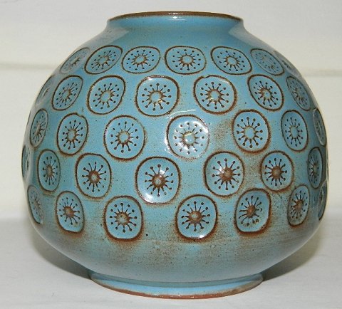 Stempel-dekoreret vase i keramik af Jens Harald Quistgaard IHQ. Fremstår i god stand. Fabriksmærket på bunden. 11 cm høj
