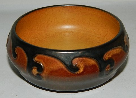 Lille skål i keramik på tre fødder fra P. Ipsen. Fremstillet omkring 1900-1920. I perfekt stand. Fabriksstemplet på bunden. 3½ cm høj og 9 cm i diameter.