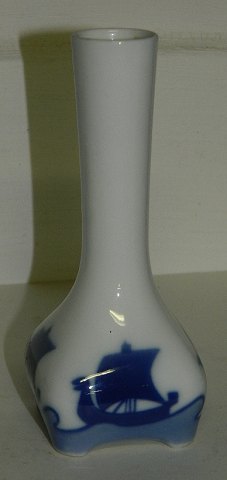 Royal Copenhagen porcelænsvase på fire fødder med dekoration af vikingskibe. Fremstillet i skønvirkeperioden mellem 1900-1923. I perfekt stand. Fabriksmærket på bunden. 12½ cm høj