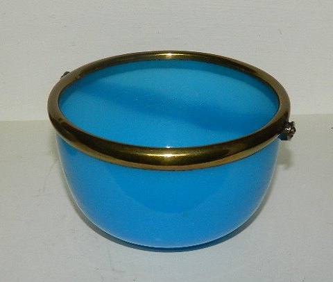Sukkerskål i blå opalineglas fra slutningen af 1800-tallet. Metalmontering med hank. I perfekt stand. 7½ cm høj.